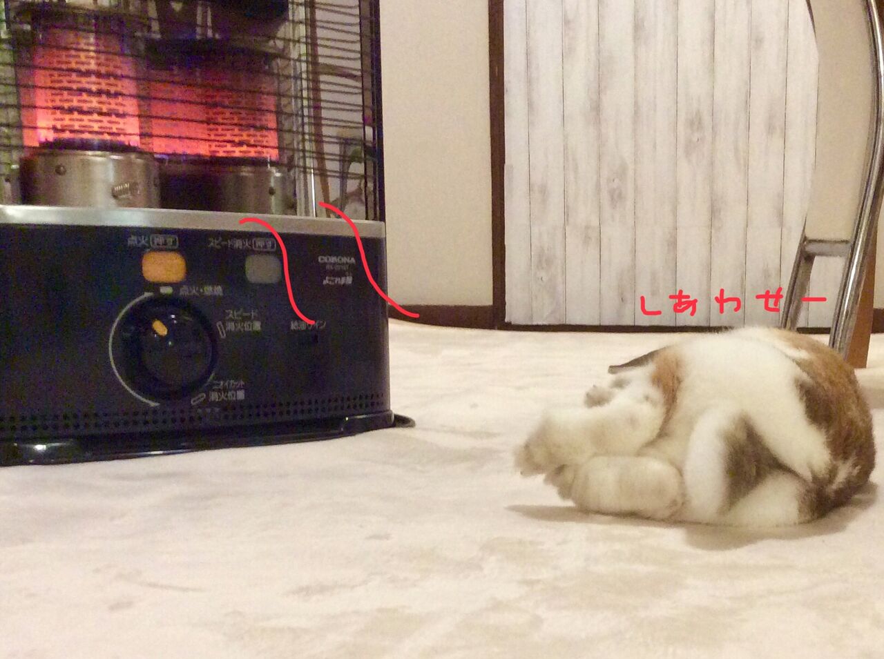 今年もストーブ前を独占して