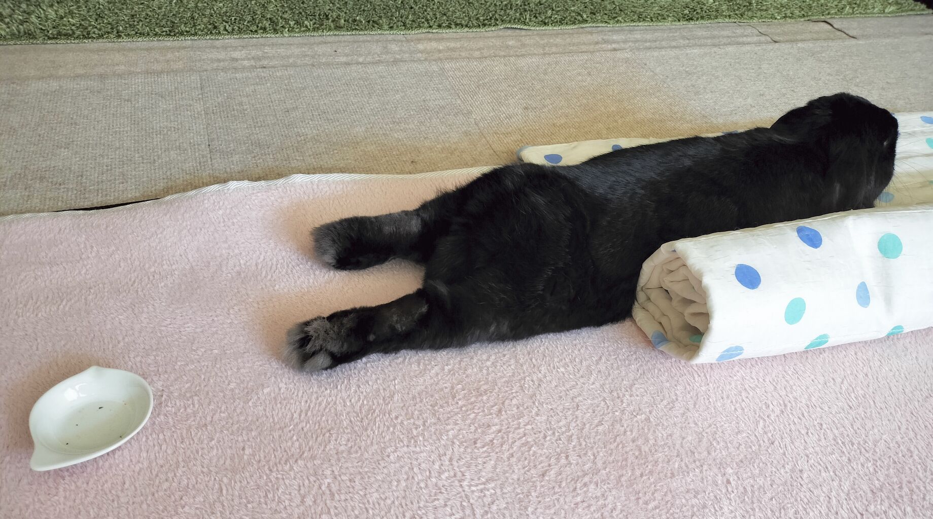 2023年06月18日 33℃の日曜日 暑くなってくると 賑やかになる玄関外です ついさっきは だんご虫がいたのよね 「 おいかけてきた 」 ほうきで掃いても また戻って来るので 我々が逃げてきました 今日の こんぶの町は 33℃にもなるそうです 「 おなかいっぱい 」 涼しい部屋で ゴロゴロ過ごすとしよう お出かけの方は 熱中症に気をつけて下さいね〜 こんぶは 「 スイカもってる 」 おやつに食べるとします ☆ おまけ ☆ 言葉にして言わずとも 「いま うんちしてきた」 匂いで わかる このブログ応援はコレ押す にほんブログ村 〜 タグ :#うさぎ#里親#里子#こんぶ#だんご虫