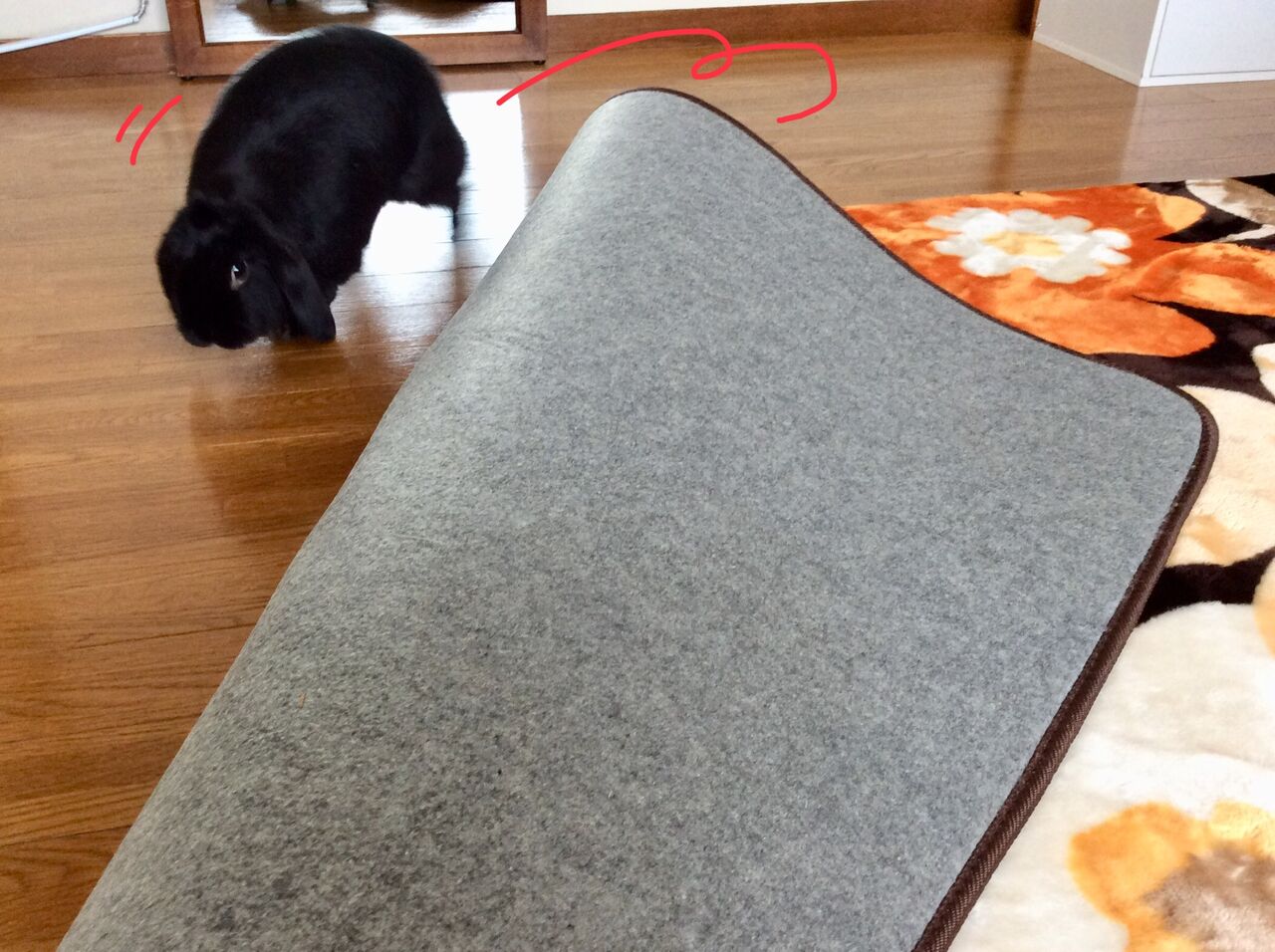 必死にラグを