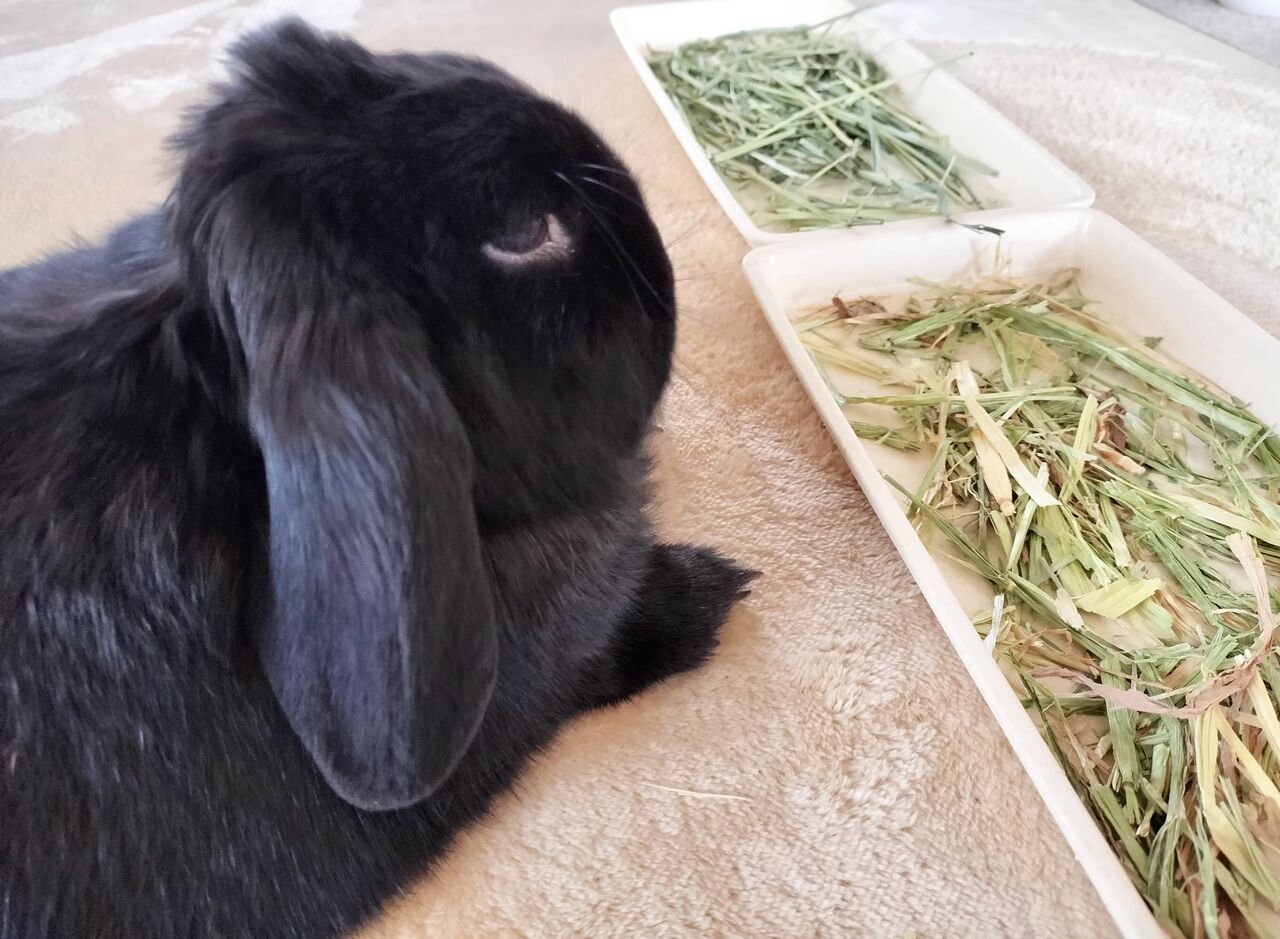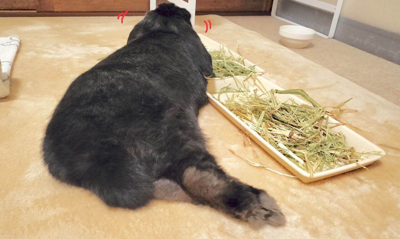 今朝なんかは牧草まで口が