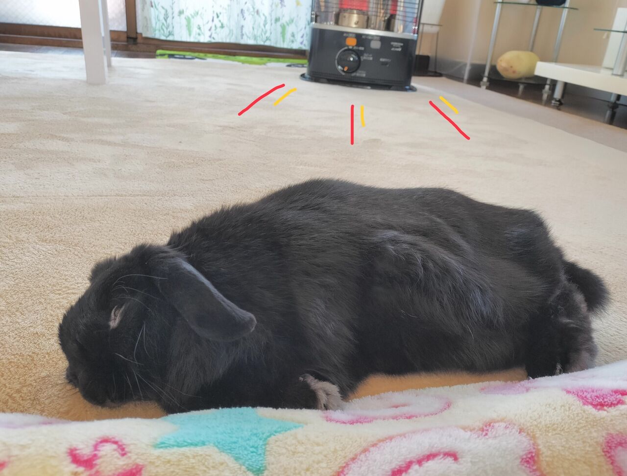ストーブの前でコレです
