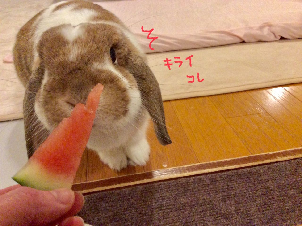 2024年07月20日 まるまるの正体 こんぶの大好きな スイカ(とメロン)を まるまる頂きまして カットされたものしか 見たことがないので ぜひ見せてあげたく… ワクワクしながら←私 見せましたらね 「こわい こわいっ」 怯えさせるという始末。笑 喜ぶと思ったんですけど 不気味な物体でしか なかったようです カットをして 正体を知れば 大喜びでしょうけど (矢印方面にスイカメロン有り) 「あっちいけ・・・」 良かれと思いきや 可哀想なことしました ごめんなさい 今すぐ片づけるとします 🍉🍈 にほんブログ村 またね〜 にほんブログ村 タグ :#うさぎ#里親#こんぶ#スイカ#メロン