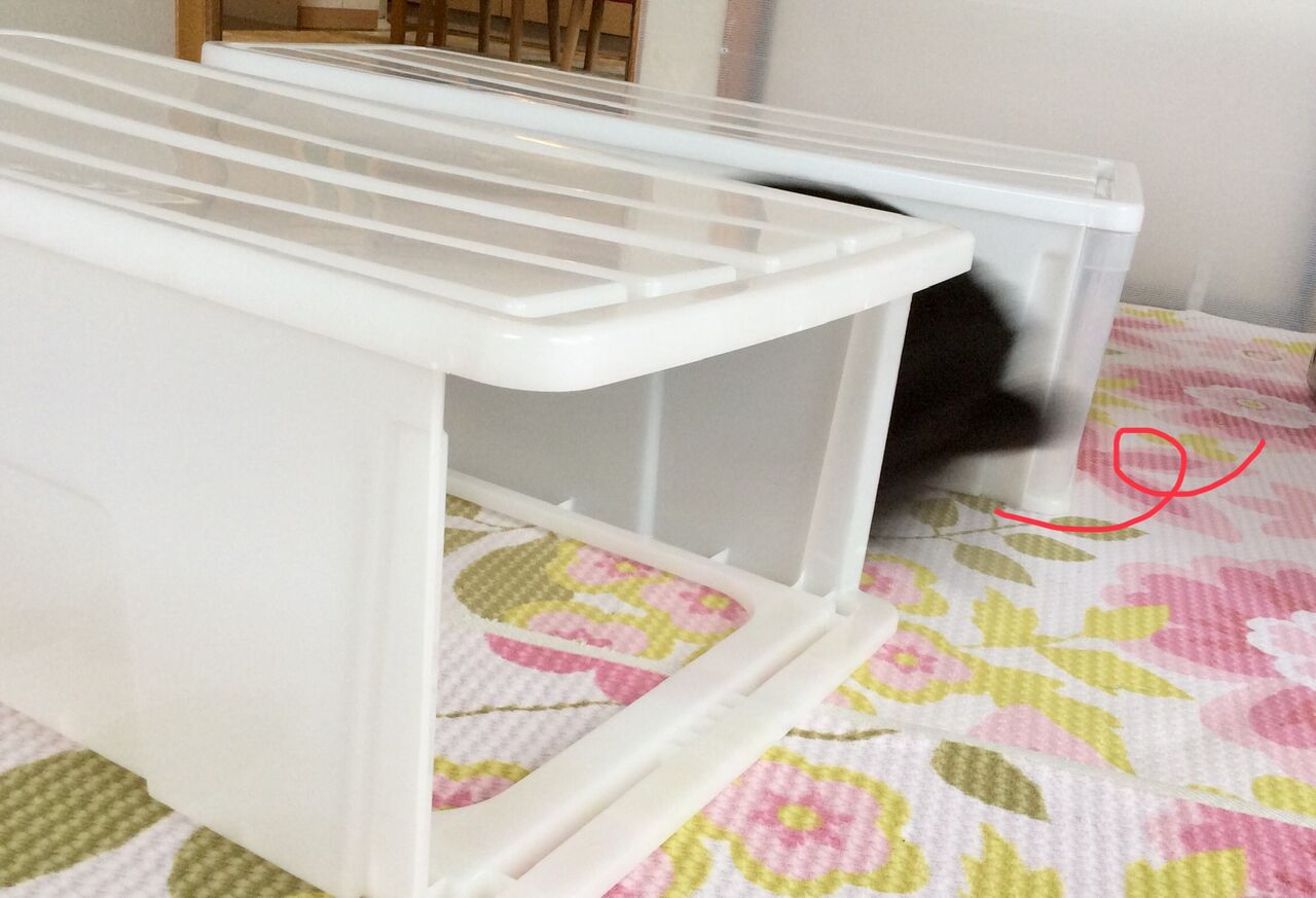 衣装ケースで遊んでます