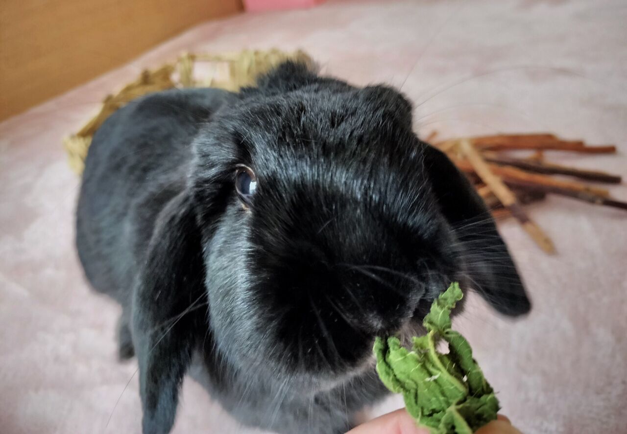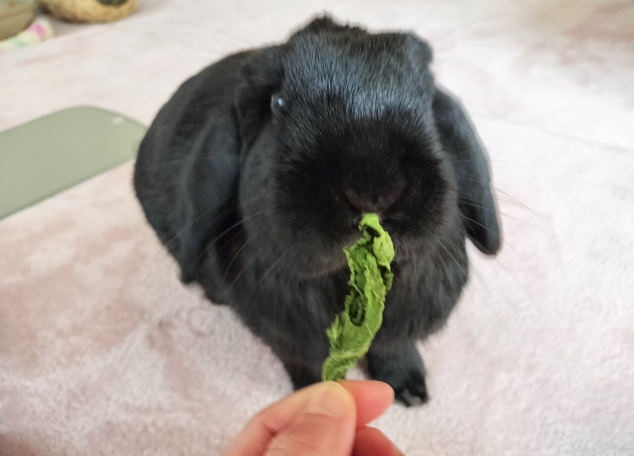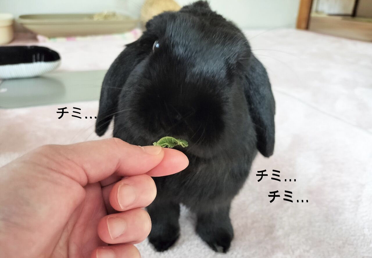 急いで牧草を食べ始めた。