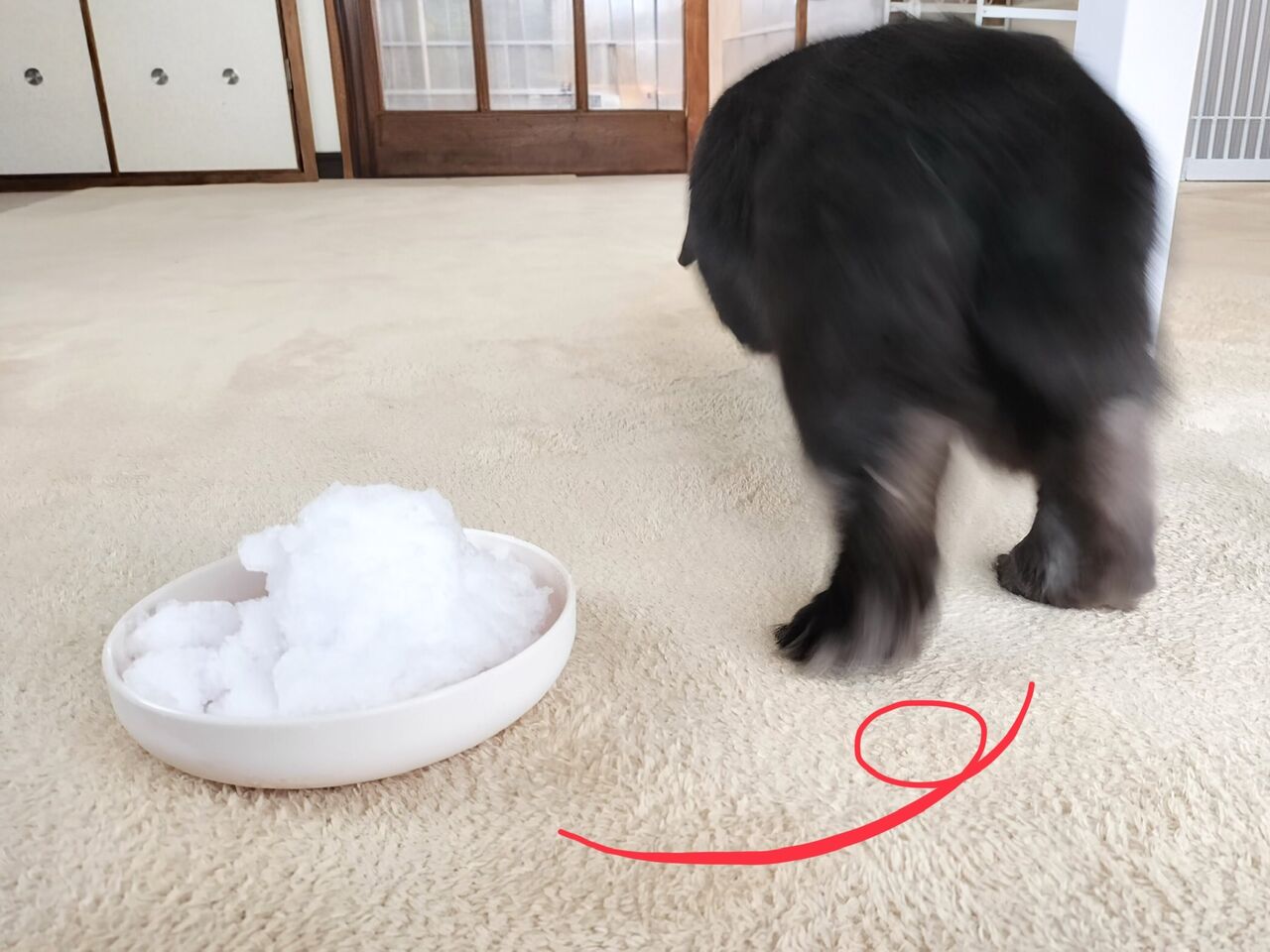 バサバサの真っ黒い毛で